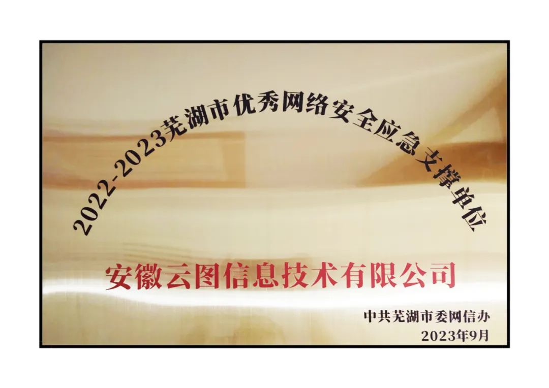 bbin宝盈头条 | 荣获“芜湖市优秀网络安全应急支撑单位”称号
